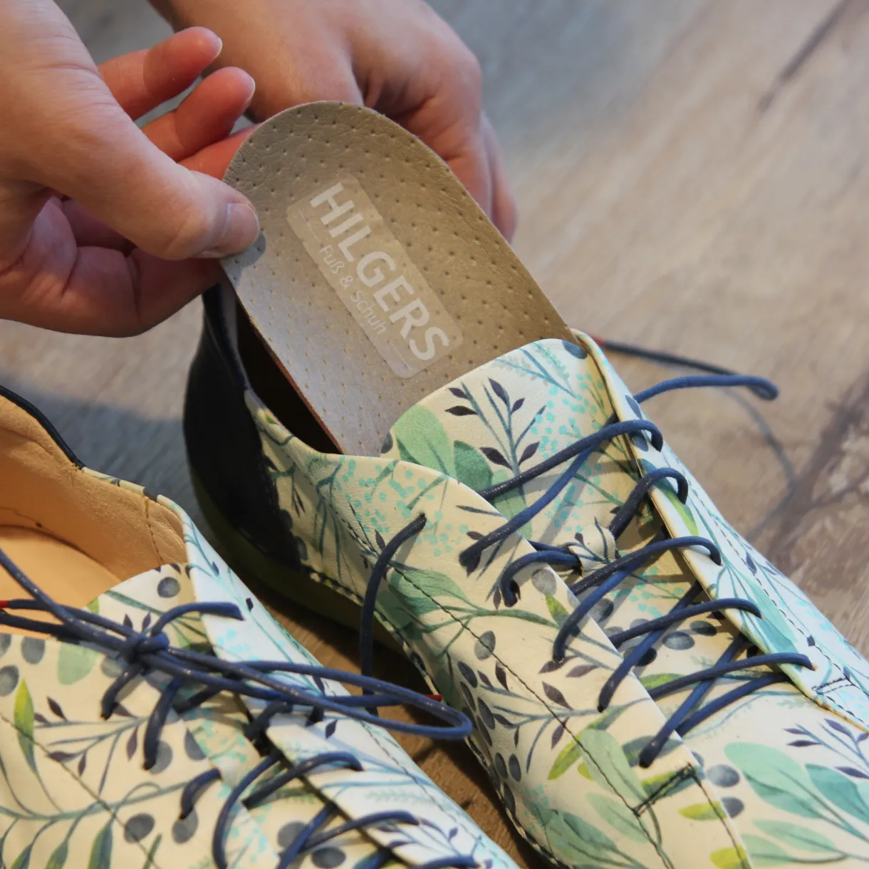 Die dünne, leichte Einlage passt in jeden Alltagsschuh.